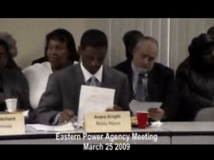 And everyone at the legislature has seen Ernestine Davis lobbying the blog bill as a no – Why, too much sunshine has been shining on her. But in this video she says she has never heard of it. Come on now Ernestine – never heard of it and you call yourself a super lobbyist. Puuuhhhleeease. You read well but you have never laid eyes on Senator Binghaman and we called to see and his office has never heard of you or surprise, surprise he has never heard of ElectriCities either. Good branding. Good lobbying. Ernestine also admits hiring Ferguson group for two workshops cause she aint sharp enought to talk stimulus or go to the FREE workshops the Congressmen are having. But did she say that she spent $30,000 on them – that’s $15k a workshop. Whoooops. She did not say that. Also notice half the room left. Boredom. Oh, Mike Colo, this is the opinion of two folks in Wilson utterly bored by this video and it is our OPINION.
