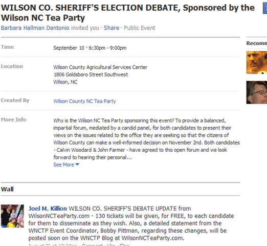 I was sent this a couple of days ago after the Wilson Tea Baggers decided to make it a “free” event by giving away 130 tickets.  Let me be clear, by saying I have spent some time researching and talking to people (off the record) regarding this event, so I think I’ve met the burden of due diligence.