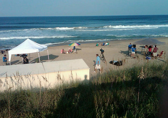 Utility grade pop-up tents to keep the sun off…$485 dollars. Sony HiDef HD Cams with multi-pacs…$8,500. Watchin’ it all blow away as a news producer drops the F Bomb….PRICELESS !