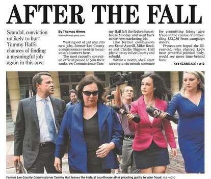From the The News-Press, published in Fort Myers—Reporters are on the heels of Tammy Hall. I really don’t want (or care) to get into all of her troubles, I just though the picture was funny. If see stopped suddenly, without warning, she’d have a camera shoved up her….
