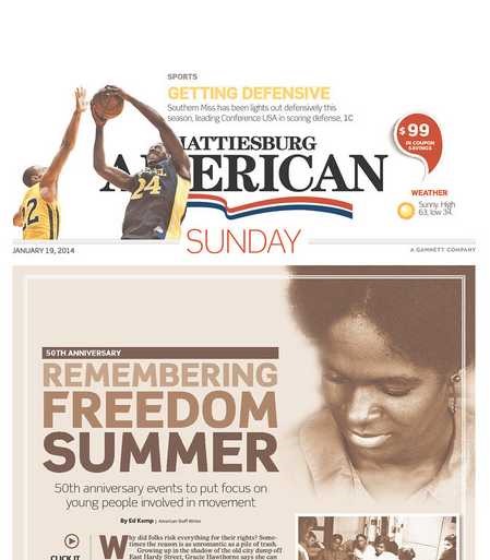 The only Mississippi newspaper to have a front page headline about the MLK 50th anniversary is Hattiesburg American, published in Hattiesburg, Mississippi. It’s sad only one paper had this covered.